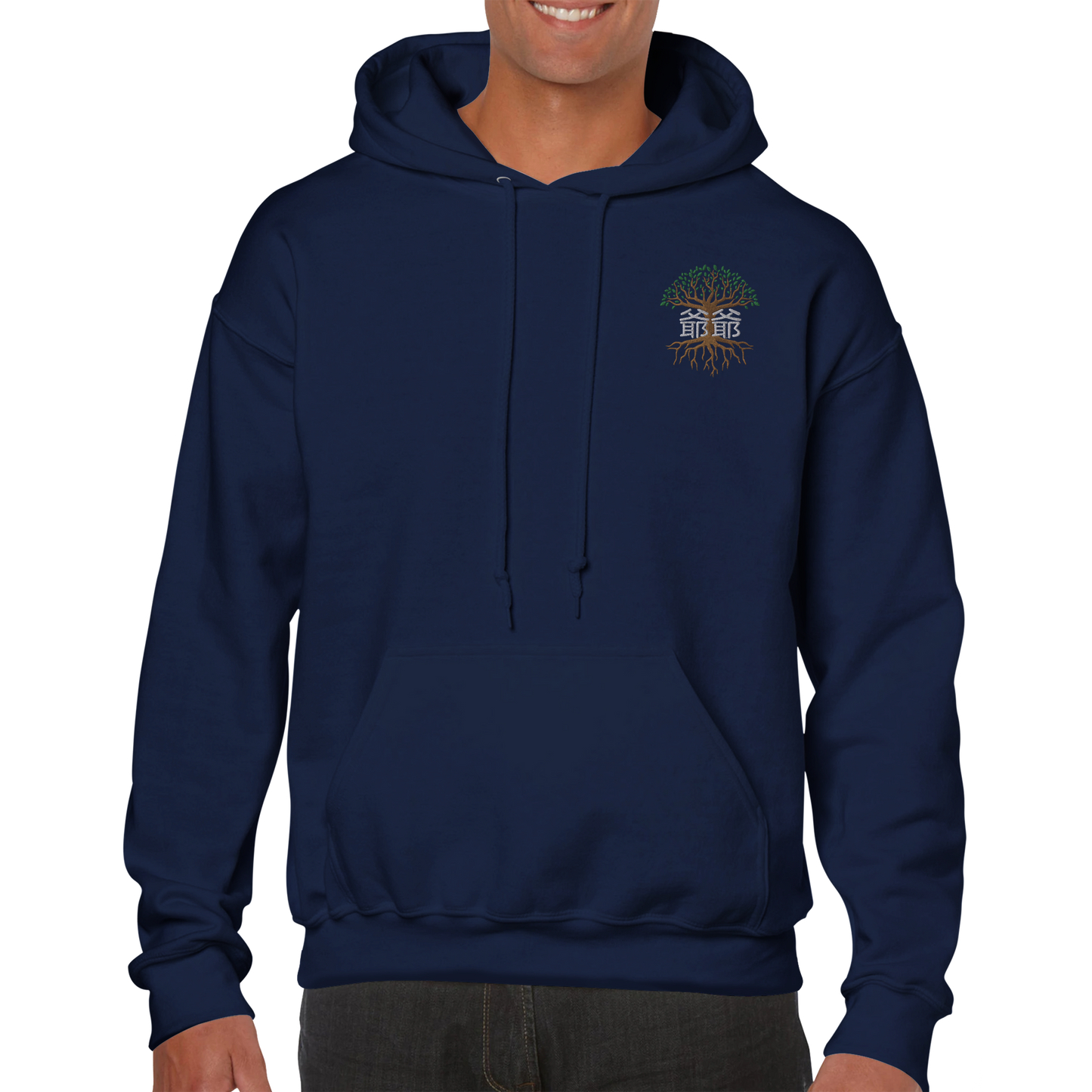 Family Tree Grandpa | Chinese | Embroidered Premium Unisex Pullover Hoodie Sweatshirt